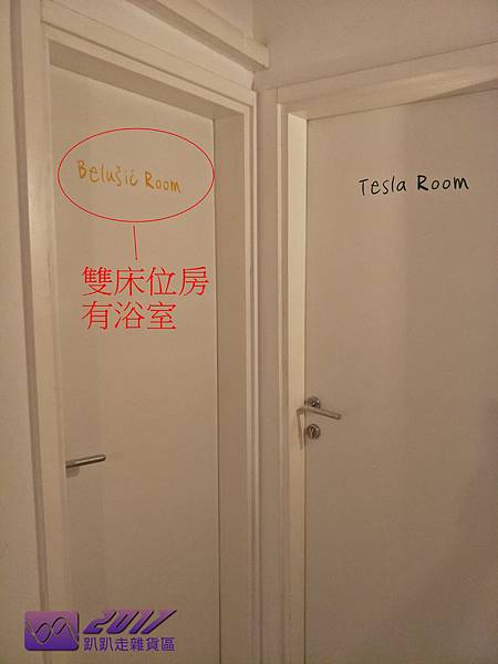 這裡的每間房都有自己的名字,我們這次入住的這間名字是「Belusic Room」,雙床房 (有私人浴室)。
