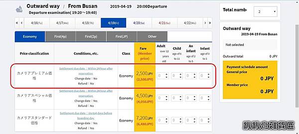 Camellia Line 網路訂票官網有二個,爬文看到網友們的分享後,煮婦就逐一進去官網去看一下內容,然後比較一下價格,果真...日本的官網有特價船票耶!!2,500 JPY 這怎麼可以不買呢??