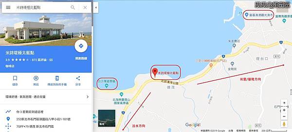 米詩堤極北藍店家的位置就在北海岸白沙灣附近,附近有「富基漁港」也可以去走走吃海產。