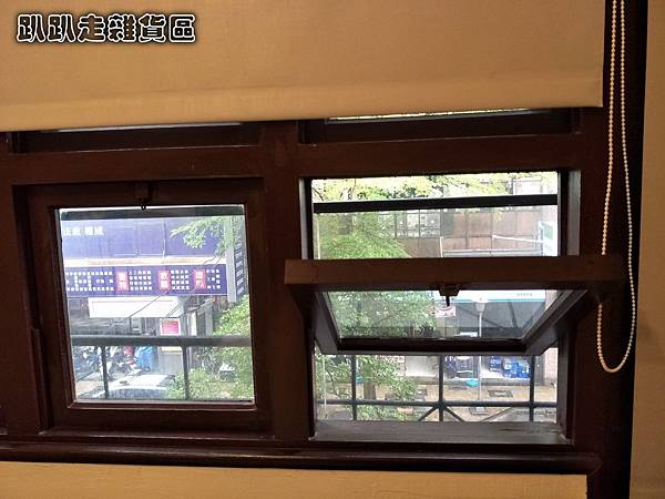 這房間的復古造型,真的有稍稍療癒我們被煙味影響的壞心情。所以馬上就打開這古早的窗戶想讓空氣對流一下,可以吹散煙味。